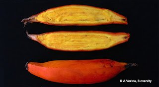 In addition, the orange Fe'i group Musa cultivar Asupina stashes its carotenoids in microscopic sacs during ripening, shifting the chemical equilibrium in the fruit so it can make even higher levels of these substances. The researchers say their work will provide insights for future developments in the biofortification and breeding of bananas that contain higher levels of carotenoids.